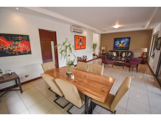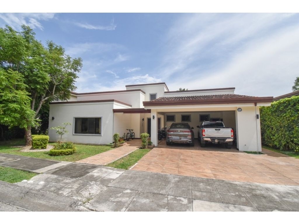 ID # 470 Single level house located in Piedades de Santa Ana in the exclusive Bosque Dorado Condominium, it has a 671m2 lot and a one-level construction in which the house does not adhere to the 400m2 house that are distributed as follows: Front garden Garage for 4 vehicles 2 of them covered Entrance hall 1/2 guest bathroom Office TV room Dining room with A / C Master bedroom with walk in closet, A / C, bathroom with tub 2 secondary bedrooms with their closet, A / C and their full bathroom each Kitchen with granite countertops with dining room Laundry room Maid's room with its full bathroom Covered terrace with bar area Rear garden The Condominium has: 24/7 Security Swimming pool with swimming lane Children's play Green areas Party ranch with BBQ area Guest parking