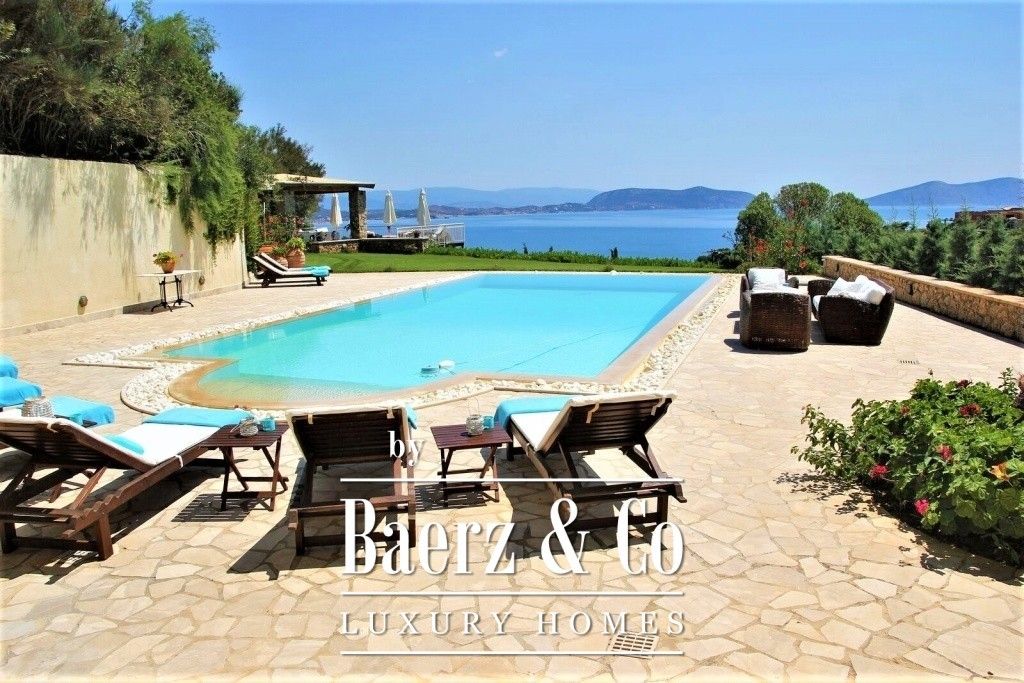 At a distance of 400 meters from the beaches of Kounoupi, Kranidi, an independent three-level detached house with a total surface of 280 m2 inside a private plot of 1,800 m2 is available for sale . The 1st level (ground floor) offers two (2) master bedrooms, each with their own bathroom, a living room with a large terrace and direct access to the pool. The 2nd level (1st floor) includes the main reception area, a comfortable living room, a dining room, a closed modern, fully equipped kitchen, a dressing room, & a w.c.,All rooms lead to a terrace with a living and dining area overlooking the sea. The 3rd level (2nd floor) consists of (3) bedrooms, two out of which are master bedrooms and all with their own balcony overlooking the sea. The house is maintained in excellent condition, is equipped with its own power generator, oil heating system, air conditioning in all rooms, a fireplace, built-in appliances in the kitchen and will be delivered entirely equipped and furnished. The surrounding area is fully landscaped with tree plantings, lawn, pavings, includes a water drilling, an outdoor pool of 72 m2 (12x6) with an outdoor shower & WC, a covered car parking area and a beautiful B.B.Q. area with dining and living space available.