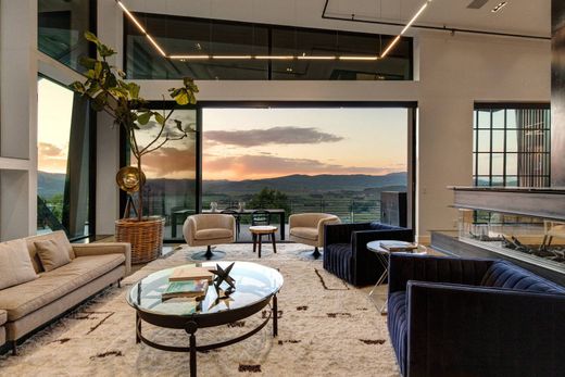 Introducing Sky’s Edge, an extraordinary mountain retreat in the desirable Park Meadows neighborhood just minutes from world-class skiing and charming Main Street. Designed by Jean-Yves Lacroix and built by GoWest Development, Sky’s Edge represents architecture in its purest form, with the structure of the home visible and the industrial elements of concrete, steel, and glass balanced by warm patinas, soft curves, and elegant custom lighting. This stunning property opens to an inviting sitting room with a standing fireplace and floor-to-ceiling views of the breathtaking valley and mountain range in the distance. An open-concept living area includes a gourmet kitchen, dining, and gathering area with oversized glass sliders leading to heated decks and terraces for easy indoor-outdoor living. A spacious primary suite is anchored by a grand fireplace and private terrace, with two separate, luxurious bathrooms with their own entrances and oversized walk-in closets. A floating sky bridge leads to the entertainment wing, which could also serve as a sixth guest suite. In addition to multiple family rooms, a home theater, hot tub, and office, guests will enjoy the privacy of an oversized guest suite with its own entrance and expansive deck and terrace. Three additional bedroom suites on the lower level enjoy mountain views, the convenience of private decks, and easy indoor/outdoor living.