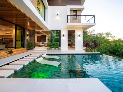 From the moment you arrive at this luxury home in Playa Flamingo, you'll be captivated by its majestic design. An elegant bridge spanning a reflective pond welcomes you at the main entrance, showcasing the meticulous planning behind every detail. Crystal's House architecture incorporates local materials such as wood, stone, and glass, achieving a perfect balance between modernity and nature.