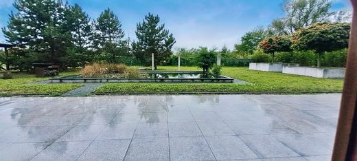 Dietwiller. Atypical real estate complex, on 9500 m2 including a 240 m2 residential house and a 2200 m2 warehouse. Located 10 minutes from the airport with access to the motorway very close to Switzerland and Germany, this house is designed in a natural and ecological spirit with insulated wooden facades and equipped with BSO for the ground floor and electric blinds upstairs. The veranda entrance (12m2) opens onto a large living / dining room (82m2) and an open fitted kitchen with two large French windows opening onto the vast granite terrace with a view of the wooded garden and a biotope. A corridor leads to a laundry room (16m2), a storage room, a large shower room and a beautiful bedroom of almost 18m2. A wine cellar completes this level. Upstairs, a very large bright room (61m2) serves a bedroom office space, as well as a master suite comprising a bedroom (20m2), a bathroom with corner bath, shower and double sink unit. The toilets are separate. All the windows are double glazed, there is underfloor heating, and the living room has a beautiful wood stove, as well as exposed beams giving it its character. This property is completed with a Carport for two cars with electricity. The 2200m2 warehouse is attached to the house with direct access. It can be ideally used for storage. It has an access door at the back for heavy goods vehicles and large machinery. Built in a quality 'glued laminated' structure, it ensures great resistance, both physical and temporal. The whole is equipped with two independent security systems. This real estate complex is fully fenced. Premises available immediately. Additional photos, video and plans will be available at a later date. The Efco immo agency will be happy to answer your questions and show you around this property. To do this, contact us on 03 89 89 90 58.