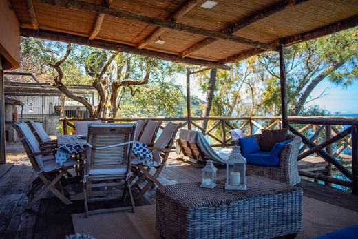 It is made up of a large living room, a dining room with fireplace, three bedrooms, three bathrooms (two are en-suite), one modern kitchen, four stunning panoramic terraces, plenty of amenities, a private path leading down to the beach, parking space and state-of-art applicances everywhere.