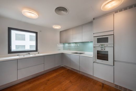 The property, completely renovated, stands out for its natural light and south orientation, which allows light to enter throughout the day. Its functional distribution begins with an entrance area that leads to a spacious dining room integrated with a high-end kitchen equipped with Gaggenau appliances. This area can be separated by a glass wall, providing flexibility to the space. It also has a pantry and access to a balcony overlooking the quiet inner courtyard.