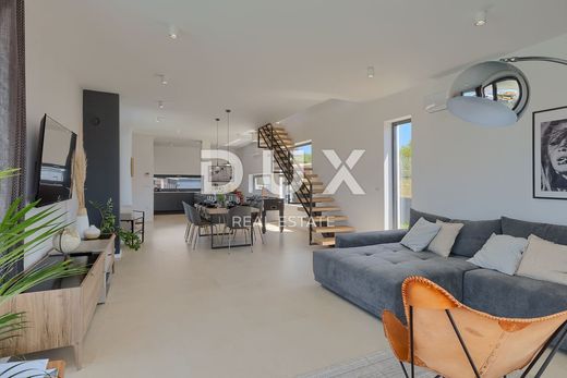We proudly present this high-quality modern designer villa located in a quiet and safe location, known as Galižana. It is a first-class family villa built for the needs of the owner in close cooperation with designers whose main focus was on comfort and elegance. This villa offers you a rare opportunity to own a top-quality property near the city of Pula and the city of Vodnjan. It is located just a few short minutes' drive from beautiful beaches and walks, located in a quiet and safe place that contains everything necessary for the everyday safe and peaceful life of a modern family. PROPERTY DESCRIPTION: This luxury villa covers a total of 135 m2 of living space, and its space is divided into two floors, ground floor and first floor. At the entrance to the villa, there is a lobby that introduces us to the exploration of the open concept ground floor without partition walls. In this space there is a comfortable and spacious living room with daylight thanks to large glass walls and a good orientation of the house, then there is also a modern and fully equipped kitchen and a dining area sufficient for the whole family. In the mentioned lobby of the villa there is also a fully equipped guest bathroom. What additionally adorns the ground floor of the villa is direct communication with the outdoor covered terrace, where there are sitting areas ideal for relaxing and entertaining with friends and family, and we are sure that the equipped summer kitchen with barbecue will help you in this. The first floor of the villa is accessed by an internal modern staircase, where there are three comfortable bedrooms, each of which has access to the terrace, so that two smaller bedrooms share the same terrace, while the larger master bedroom has access to its own private terrace. Every terrace offers a wonderful view of the village, the sea and green fields. Likewise, the larger master bedroom has its own bathroom, while the other two smaller bedrooms share a common bathroom. What we must highlight is the modern design and style of the villa. During the furnishing, the owners paid attention to every detail and thus chose one of the highest quality furniture from renowned manufacturers with a signature. In addition, a great focus during the furnishing was on comfort and luxury, which you feel from the first step into the villa. DESCRIPTION OF THE GROUND: The villa is located on a plot surrounded by a wall, and consists of a total of 500m2. The yard is accessed through an electric gate with sensors, after which there are two parking spaces for your tin pets. However, the central part of the garden is occupied by a spacious swimming pool of 36m2 (9mX4m) with a sunbathing area/beach. Next to the swimming pool is the already mentioned comfortable covered terrace and summer kitchen with barbecue, which makes staying in the garden even more pleasant and fun. What we must emphasize is the modern approach to arranging the garden, which conveys the feeling of continuous connection between the interior and exterior of the villa. Thus, the garden is decorated in a modern simplistic tone with a note on simple reflection and elegance. There are also enough green areas in the garden, ideal for relaxing and reading your favorite book, as well as for entertaining the youngest members of your family. ADDITIONAL AND TECHNICAL INFORMATION: * The villa is sold fully furnished as can be seen in the pictures. * All rooms of the villa are air-conditioned, while the villa also has a chimney, which allows you to stay all year round. * The ownership of the villa is in order, the owner is 1/1, and the villa has all the necessary documentation. LOCATION DESCRIPTION: The villa is located in a quiet residential part of Galižana, surrounded by similar modern houses that are used as vacation homes or as family properties for year-round living. The location where the villa is located is ideal for a peaceful and safe family life as well as for an investment in the form of luxury tourism with a safe return on investment. Just a few steps from the villa, there are all the facilities needed for everyday life, such as shops, small markets, markets, drugstores, doctors, schools, kindergartens, restaurants, cafes and the like. For all additional needs, the city of Vodnjan and the city of Pula, the largest city on the Istrian peninsula, are nearby. One of the most beautiful beaches with a variety of amenities such as restaurants and beach bars, as well as one of the most beautiful walks and bike paths by the sea, are only a 10-minute easy drive from the villa. Dear clients, please feel free to contact us for any additional questions, necessary information or wish to organize a tour of the villa.