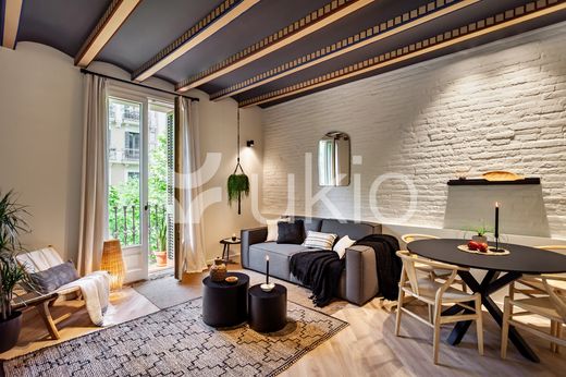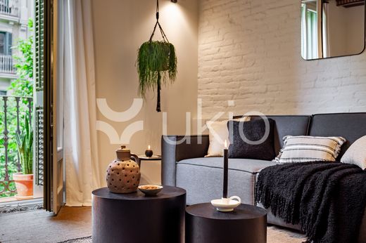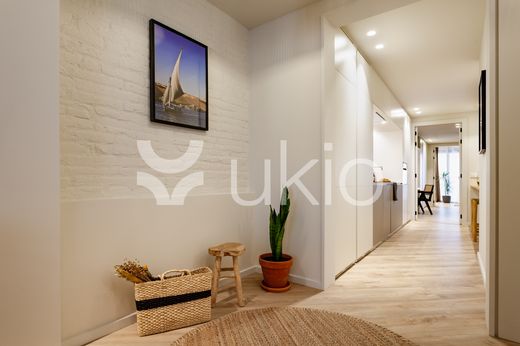 Step into Baharya’s living room with large window doors that open out to a small balcony, a white exposed-brick accent wall, and a gorgeous Saharan desert carpet. This 76 square meter desert-themed apartment tastefully packs in everything you need within its walls including a galley kitchen, a master double bedroom, a single room with a glass wall, one bathroom, a fully furnished kitchen, and a dedicated work space. This home comes with all of the furnishing you need, including bedding and linens, all of which match the desert toned features of Baharya. Light and breezy, this apartment allows for a taste of Barcelona’s Mediterranean climate right from the sofa.