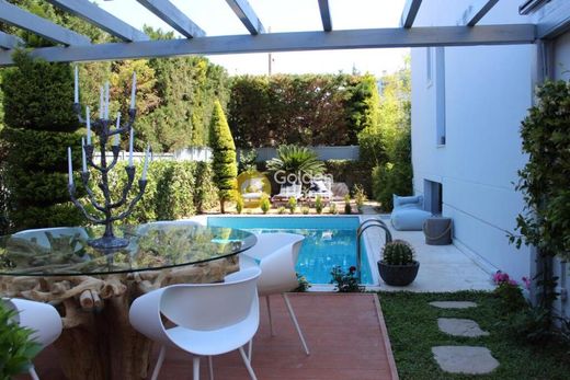 Wonderful detached house near Golf Glyfada on a plot of 475 sq.m. with nice garden with pool, garden - pool furnitures, electric awning, outdoor bar, bbq. On four levels. Basement: storage room, playroom - gym, maid's room with wc, underground parking. Ground floor: living room, dining room, kitchen, bathroom. 1st: 4 bedrooms of which 1 is master, 2 bathrooms. 2nd: 1 large master bedroom and large terrace with bbq and nice view. The levels communicate with an internal wooden staircase and an elevator. The villa is furnished with all appliances. It has oil autonomous heating, a/c, solar panel, fireplace, alarm, awnings, screens, security door, double glazing.