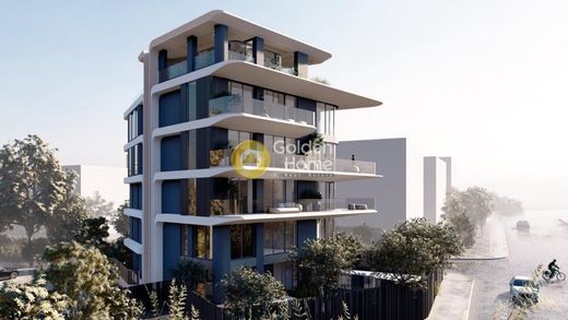 Kato Voula, 90 sqm Minimal apartment on the 2nd floor, featuring 2 bedrooms and 2 bathrooms (1 master and 1 children's), a living room, kitchen, energy-efficient fireplace, 1 parking space, and a 10 sqm storage room. Granite tiles adorn the balconies, while the kitchen furniture boasts acrylic composite doors and granite work surfaces. It's equipped with a radar alarm system and offers all modern amenities. Just 500 meters away from the sea.