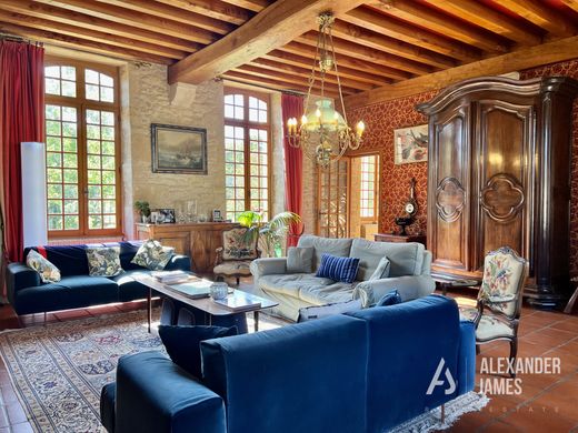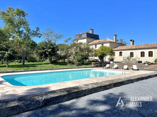 This splendid chateau is located not far from the charming village of Monségur, with its many shops, bars and restaurants. The entrance to the property is via a stunning long tree-lined driveway, leading to a pretty paved interior courtyard. The ground floor with its generous volumes and harmonious layout of the rooms consists of large bright living rooms, perfect for entertaining, as well as a friendly dining room with beautiful features, such as pretty woodwork and a period fireplace. Access to a pretty terrace with large columns allows you to enjoy the hot summer days. The spacious kitchen combines modernity and authenticity. The ground floor also includes an office, a bedroom with bathroom, a laundry room and two separate toilets. The first floor consists of five bedrooms, including a master suite with bathroom and a balcony offering lovely views of the wooded garden. A games room, a shower room and a separate toilet complete this ensemble. The top floor, more intimate, offers two additional bedrooms with a shower room and a toilet, offering multiple possibilities of layout, whether for personal use or to accommodate guests. The property also includes two gîtes to renovate, located at the ends of the interior courtyard, a winemaking cellar with a cellar and the wine-making equipment necessary for the exploitation of the vines. A large room with many annexes and a garage is ideal for organizing events such as weddings, seminars or even serving as a tasting room for the wine-making activity. The property also has a renovated caretaker's house. A stone building and a cabin could be transformed into additional gîtes (subject to the necessary authorizations), as well as a large hangar for storing equipment. With its two lakes, its many fruit trees, almond trees and truffle trees, as well as its developed irrigation system, this property has many assets. The property is unique in the area and has great potential for someone wishing to develop a tourist accommodation business, or a wine and wine tourism business. Due to its services, this property is perfectly suited to many uses, such as a holiday home for family gatherings or as a property with great income possibilities (wine, trees, gîtes etc).