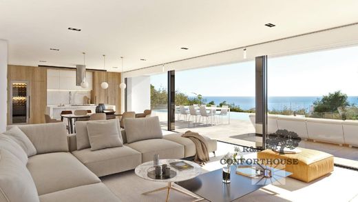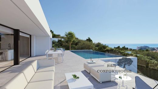 Residencial Jazmines, one of the most exclusive areas of the Cumbre del Sol Residential Resort, a contemporary architectural complex intended for the construction of large luxury villas, which enjoys some of the most spectacular sea views on the Costa Blanca.~~The most spectacular thing about Villa La Isla is its impressive living-dining room, with an open layout with three different areas, TV area, living room and dining room also joined to the kitchen, of large dimensions, by a magnificent central island. All the main rooms are connected to the outside, with the pool terrace and the porch to enjoy eating outdoors contemplating the sea practically all year round.~~The master bedroom also deserves a special mention, with an en-suite bathroom with double sink, with bathtub and shower, connected to the dressing room and the rest area, a design oriented to comfort, which lets in light and sun and allows us to wake up contemplating the sea.~~Villa la Isla has a total of four bedrooms, all with en-suite bathrooms, dressing rooms or wardrobes and access to a terrace with sea views. Equipped with parking for two vehicles, and impressive outdoor areas with an infinity pool, gardens, terraces and a large porch to enjoy living in the Mediterranean.~~These magnificent homes offer, high-end lacquered aluminum exterior carpentry with thermal break, double glazing, porcelain stoneware flooring for the home, entrances and parking and non-slip porcelain stoneware exterior flooring for the pool terrace. System based on an AEROTERMIA heat pump with high energy efficiency, underfloor heating. Airzone thermostats for temperature control of the home's air conditioning system (air conditioning and underfloor heating), possibility of remote management via the Internet from an application on mobile devices (iOS or Android). Kitchen equipped with furniture with integrated handle, Silestone countertop, sink, taps and appliances: refrigerator, hob, oven, microwave, extractor, dishwasher, Siemens or similar quality. Bathrooms are delivered complete. Direct and indirect interior lighting on ceilings, LED technology. Video-intercom system with call forwarding to mobile. Alarm system with verification video.~~Home automation installation in the home so that from different Apps on smartphone or tablet devices (iOS or Android) the relevant installations can be managed locally or remotely via the Internet. With two iPads included for home automation control. Smart speaker that, among other functions, allows us to control the compatible digital devices in the home with our voice, in an easy and simple way. Installation of a platform/app for remote control of the irrigation system.~EXTERIOR ELEMENTS: Barbecue with bench (with pre-installation of sink and socket on the countertop).~~Residencial Jazmines is part of the Cumbre del Sol development, so the homes located there enjoy all the services that this consolidated development offers, which has a shopping area with a supermarket, hairdresser, pharmacy, bars and restaurants, Lady Elizabeth School international school and a diverse sports offer with tennis and paddle tennis courts, hiking routes, equestrian center, not forgetting Moraig Beach with beach bars and Calas Llebeig and Los Tiestos, coves of great beauty and charm.~~Don't miss this opportunity to enjoy all the amenities offered by this wonderful villa and all its surroundings.~~You can see all our available properties on our website.~Find out without obligation. We'll wait for you.~Find out without obligation.~~FOLLOW US ON SOCIAL MEDIA:~FACEBOOK RBconforthouse.~INSTAGRAM Rbconforthouse.
