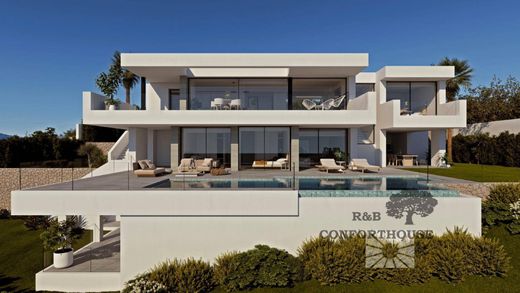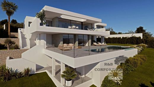 Villa Marina, a villa with contemporary architecture, open spaces, lots of light and impressive sea views are the main features that define this property.~~Villa Marina has 3 bedrooms with en-suite bathrooms, the master bedroom being a private space to relax in front of the sea either in its hot tub or on its private terrace. The living-dining room deserves a special mention, a spacious and bright room, with direct access to the terrace with large floor-to-ceiling windows, which are fully retracted, extending the dining room to the terrace and enjoying incredible sea views.~~The amenities of this villa are endless and reflect its quality and equipment: elevator, closed garage for 2 vehicles internally connected to the hall, TV room, home automation, laundry room, underfloor heating throughout the house, infinity pool and large garden areas. A wonderful place to live all year round, enjoying the Mediterranean climate and the wonderful sea views of the Cumbre del Sol Residential Resort.~~These magnificent homes offer, high-end lacquered aluminium exterior carpentry with thermal break, double glazing, porcelain stoneware flooring for the home, entrances and parking and non-slip porcelain stoneware exterior flooring for the pool terrace. System based on an AEROTERMIA heat pump with high energy efficiency, underfloor heating. Airzone thermostats for temperature control of the home's air conditioning system (air conditioning and underfloor heating), possibility of remote management via the internet from an application on mobile devices (iOS or Android). Kitchen equipped with furniture with integrated handle, Silestone countertop, sink, taps and appliances: refrigerator, hob, oven, microwave, extractor, dishwasher, Siemens or similar quality. Bathrooms are delivered complete. Direct and indirect interior lighting on ceilings, LED technology. Video-intercom system with call forwarding to mobile. Alarm system with verification video.~~Home automation installation in the home so that from different apps on smartphone or tablet devices (iOS or Android) the relevant installations can be managed locally or remotely via the Internet. With two iPads included for home automation control. Smart speaker that, among other functions, allows us to control the compatible digital devices in the home with our voice, in an easy and simple way. Installation of a platform/app for remote control of the irrigation system.~OUTDOOR ELEMENTS: Barbecue with bench (with pre-installation of sink and socket on the countertop).~~Residencial Jazmines is part of the Cumbre del Sol development, so the homes located there enjoy all the services that this consolidated development offers, which has a shopping area with a supermarket, hairdresser, pharmacy, bars and restaurants, Lady Elizabeth School international school and a diverse sports offer with tennis and paddle tennis courts, hiking routes, equestrian center, not forgetting Moraig Beach with beach bars and Calas Llebeig and Los Tiestos, coves of great beauty and charm.~~Don't miss this opportunity to enjoy all the amenities offered by this wonderful villa and all its surroundings.~~You can see all our available properties on our website.~Find out without obligation. We'll wait for you.~Find out without obligation.~~FOLLOW US ON SOCIAL MEDIA:~FACEBOOK RBconforthouse.~INSTAGRAM Rbconforthouse.