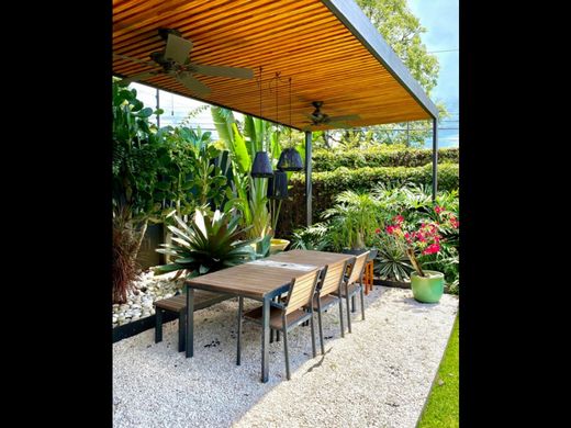 House for Rent in Lindora, Santa Ana Located in the exclusive area of Lindora, Santa Ana, this single-story house in the Dendera Condominium is an architectural gem that combines elegance and comfort. Its modern design, designed by architect Joan Puigcorbe, takes advantage of the natural light and fresh surroundings of the area, with ample spaces and high-quality finishes. Key Features: Layout: Three bedrooms, each with a private bathroom, and an additional half bathroom for guests. It has a bright office space. Design: Modern architecture, marble floors, 3-meter-high ceilings, an internal garden, and large windows that integrate the interior with the green area. Kitchen: Equipped with KitchenAid appliances, an integrated Bosch dishwasher, an induction cooktop, and natural almond wood countertops. Lighting and Air Conditioning: LED lights throughout the house, Daikin air conditioners, and fans in all bedrooms and social areas. Condominium Amenities: Heated Pool, Gym, Event Area, Courts, 24/7 Security. Extras: Fiber Optic Internet. Privileged Location: The condominium is surrounded by restaurants, cafes, movie theaters, supermarkets, shopping centers, and close to the best schools and colleges in the country. Rental Price: $3,800.