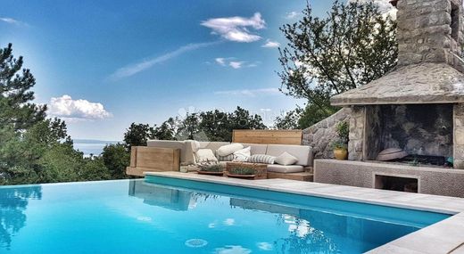 Private villa for rent near Opatija until May 1, 2025. year. A special layout with a large pool and a view from every corner of the house. Comfort is provided by 5 bedrooms (3 x double bed and 2 x 1 bed, which means a total of max. 13 people), 5 furnished bathrooms and toilets, which allows comfort and privacy.
