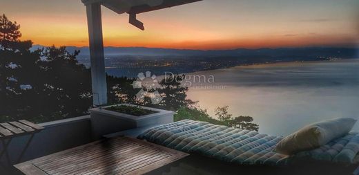 A large open space is the central part of this really beautiful house, from which there is an unobstructed view of the entire Kvarner. From the living area, a large glass wall is the only barrier to the terrace and sunbathing area and the infinity pool, and space for