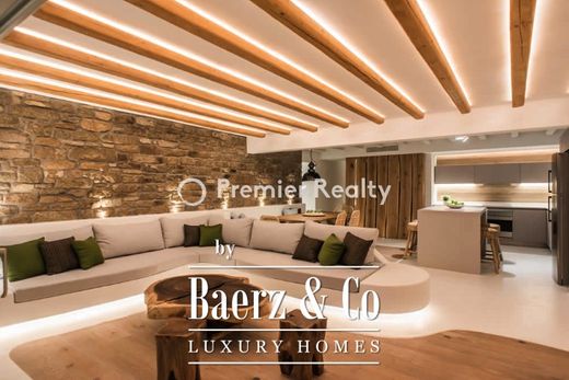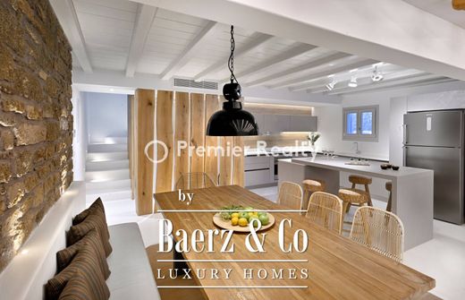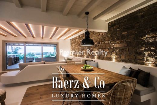 A completely renovated villa, positioned just 80 m away from Kalafatis Beach in the southern region of the island and 10 km from Mykonos Town. The property encompasses an area of 200 sq.m. and sits on an 850 sq.m. plot. The residence spans across two floors interconnected by both an indoor staircase and an outdoor one, providing direct access to the garden and the communal swimming pool from the upper-level bedrooms. It is offered with all electrical appliances and fully furnished.