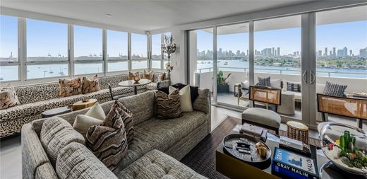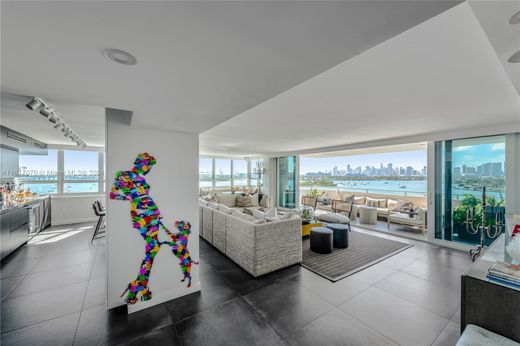 Indulge in luxury w/ this meticulously renovated 4BD/3.5BA corner unit, a seamless fusion of sophistication & comfort. Revel in breathtaking views stretching from SoBe to the Miami Skyline. The expansive living room boasts custom furnishings, open kitchen w/ample eat-in area, black & white marble countertops, wine cooler, beverage fridge, & custom cabinetry. The primary BD offers custom closets w/built-ins, an oversized bathroom w/ dual sinks, & spa shower. Grey porcelain tile floors, impact windows w/ remote shades, separate laundry room, plus 2 covered parking spaces. Soak in the breeze & mesmerizing views on your oversized covered balcony. Valet parking, 24-hr security, pool, gym, & boat slips, this full-service building epitomizes Miami Beach living at its finest.
