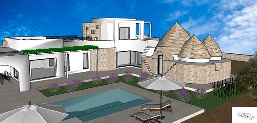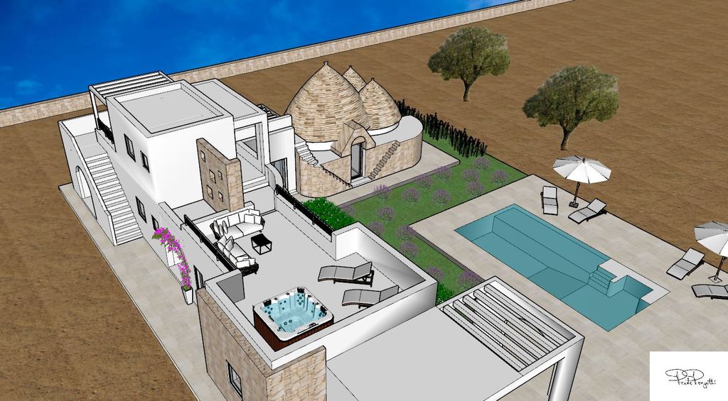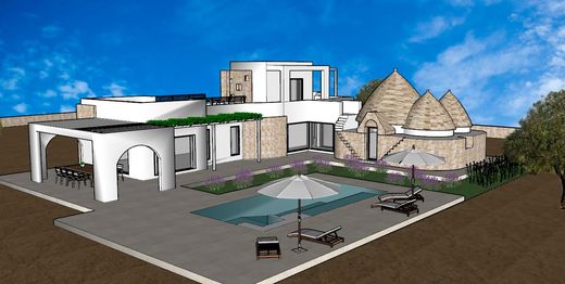 Salento Stone offers for sale a luxury villa, VILLA SALENTINA. Newly built villa on two levels for a total of 220 square meters of construction. The interiors respect the memory of the Apulian tradition with barrel vaults in exposed tuff, niches, arches. The floors in local stone although there is no lack of modern elements perfectly combined between past and present, ancient and modern. Large living room with conversation area near the fireplace that dominates the entire room, large open kitchen with service bathroom. The villa offers n. 5 bedrooms each with bathroom. The structure is completed with a large pergola and veranda. Salt water schimmer pool (40 square meters). Cistern. Artesian well with a depth of 200 meters. The property is completed with thermal cut aluminum fixtures. Heating and cooling system with air conditioning, alarm system, internet connection, fireplace, photovoltaic panels, video surveillance system. VILLA SALENTINA is built on a 12,000 sq. m. plot of land mainly olive groves with the possibility of expansion of 40 sq. m. A few km from the town center (3km), 10 km from Ostuni and 14 km from the Adriatic Coast easily reachable from the provincial road. Property under construction. Ask for information