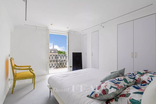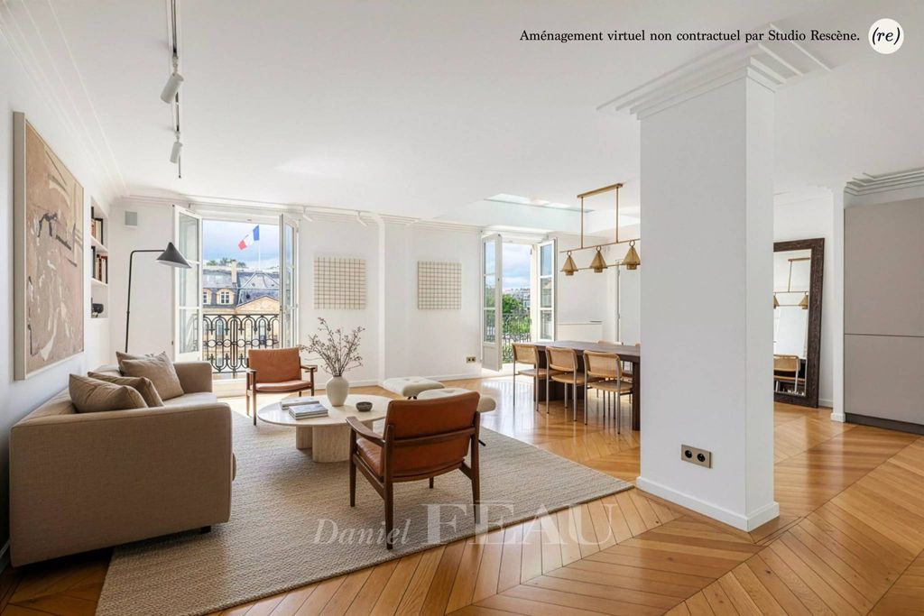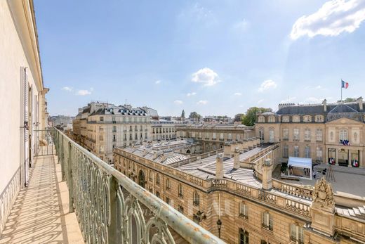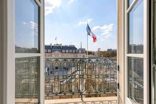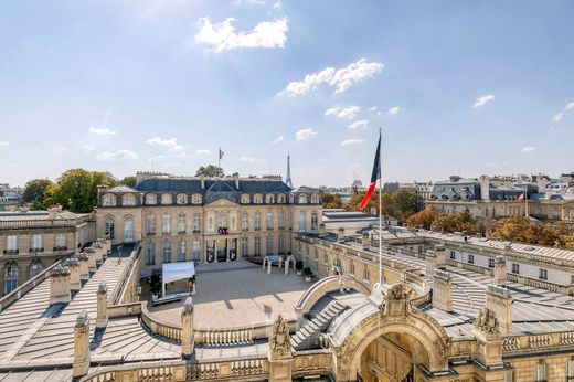 This south-west facing apartment on the top two floors of a secure 19th century building commands a stunning view of the Elysée Palace and the Eiffel Tower. 225 sqm of air-conditioned floor space and 206 sqm of living space as defined by the Carrez Law includes a double living/reception room opening onto a balcony, an open-plan kitchen, three suites with a bathroom/wc, a study with a skylight, a dressing room, a guest wc and a utility room. The apartment has been renovated in a tasteful contemporary style.