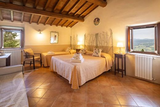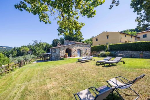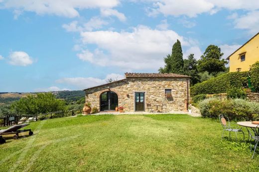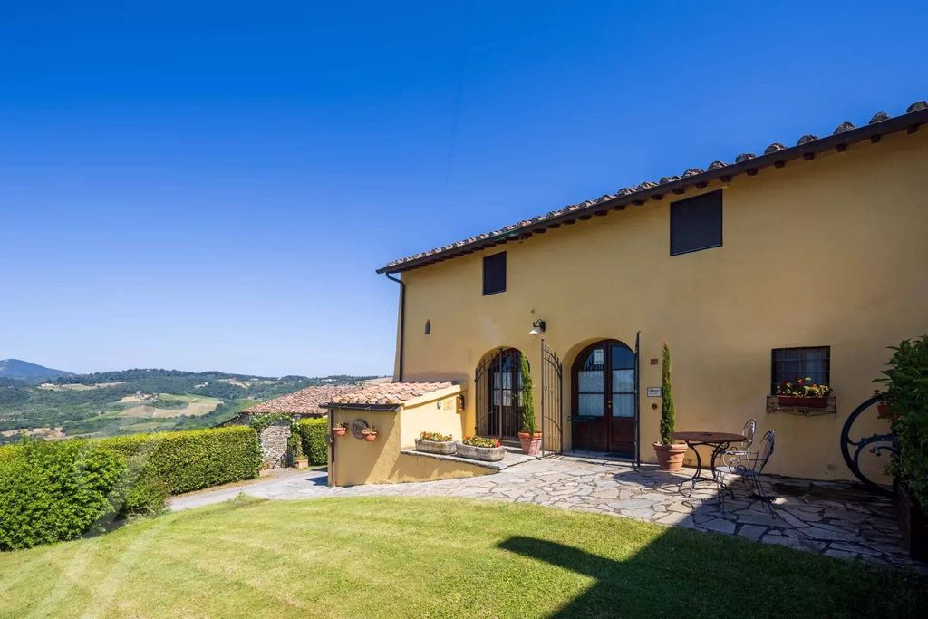 The property features a 290 sqm portion of a farmhouse and a 160 sqm barnhouse, both offering breathtaking views of the surrounding Florentine hills.