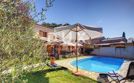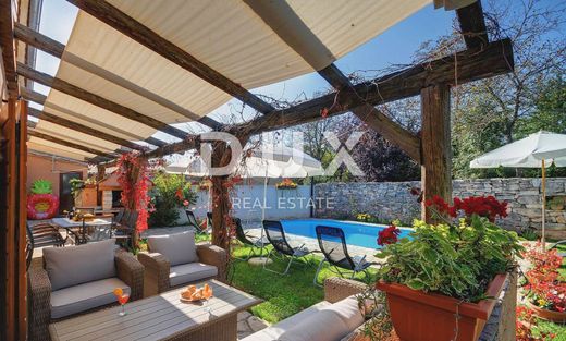 Gračišće developed on the site of an ancient Slavic cult site dedicated to Perun - the god of thunder. The memory of his veneration is preserved in the name of the nearby hill - Perunčevac. In the city, Svantevit was worshiped as Perun's divine person, whose place was later taken by St. Vid, with St. Modest and Cresencija, the patron saint of Gračišće parish. Testimonies of the ancient Slavic culture are also preserved in the toponyms of the hilly landscape that can be seen from Gračišće - Perun's town on the mountain. Gračišće, Perunčevac, Dol, Lug and Dumbrova are the toponyms that this region inherited from the ancient Slavs who settled these areas at the beginning of the Middle Ages and built the city - Gračišće - on the cliff above the vast Dol. We are selling a renovated stone house with a pool built at the end of the century. It has been completely adapted and adapted to modern living standards, with new external and internal thermal insulation. It is located in a small, quiet place in the center of Istria. It is surrounded by untouched nature, with only a few inhabitants in the entire area. It is specially positioned in terms of infrastructural connections with the rest of the peninsula and places that offer a handful of tourist attractions, natural beauties and gastronomic specialties. In 30 minutes you can reach the tourist center of Rabac in the far east, the unique town of Rovinj in the west and the first beaches 20 km away. This modernly furnished house has a total area of 190 m2 and has a garden of 576 m2 that continues along the forest road. This makes a perfect garden, which in summer creates an ideal natural space for a children's playground or cars. Spacious two-story house with 4 bedrooms on the 1st floor. floor, 3 of which have their own bathroom. On the first floor there is a large kitchen with a bar, a dining room with a living room, a bathroom and a room for fitness and recreational equipment. In the yard there is a large covered terrace, a storage room, a barbecue and a swimming pool for the summer heat. Air-conditioned rooms will be useful even on hot days, and thanks to the thick stone walls, the rooms will stay cooler for longer. You will feel the comfort of the building even in winter thanks to the built-in pellet stove. Although the building is connected, it offers absolute privacy and peace as the last house in the village, already far from other neighbors.