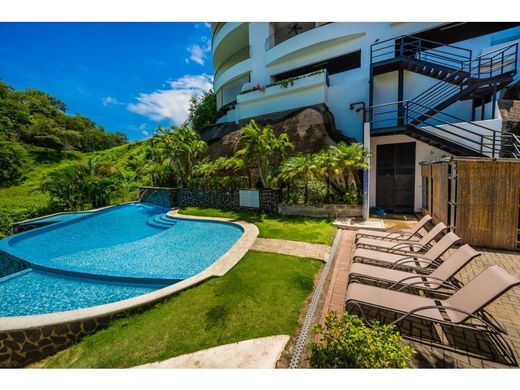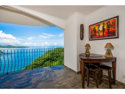 If you are looking for an absolutely mesmerizing ocean view in a luxury setting with the ease of condo living, then the Flamingo Towers Penthouse is the perfect home for you. This 3132 sq ft residence offers an open floor plan flow that is perfect for living and entertaining. The transition is seamless from the deep leather couches of the living room to the dining room and then to the beautifully designed kitchen, with its granite countertops, custom wood cabinetry, and wine fridge. From the living area you can't help but pass through the wall of glass doors out to the terrace with its expansive view of the ocean dotted with islands and the mountainous coastline fringed with white beaches. These accordion doors completely open for seamless indoor outdoor living. This condo faces West and offers the most glorious sunsets and has the most delicious breezes throughout the year. Whales have been spotted from this balcony! Wake up to this awesome view every morning from the king-sized bed in the master suite with its elegantly appointed bathroom featuring a deep soaking tub with the same amazing views. Two more bedrooms with hand-carved beds and their own luxurious bathrooms are awaiting your family and friends. The Penthouse is a showroom of high-end finishes: tray ceilings, arched doorways, beautifully tiled floors and museum-quality wood furniture. The condo is sold fully furnished and equipped. Amenities include a parking garage assuring safety and protection from the elements for your vehicle, 24 hour security, 2 elevators, and 2 swimming pools for sunbathing or cooling off. And did we mention the view? You have to see it to believe it! Flamingo Towers is located a short 5 min drive to the new Flamingo Marina, to the white sands of Playa Flamingo and to the darker but longer and closer Playa Brasilito. It is a 45 min drive from the international Liberia airport and less than 10 min drive to 2 international schools. This condo would make a fabulous permanent home or a great short term rental. We'd love to show this jaw dropping view to you! Give us a call to set up a showing today! Virtual tours welcomed. HOA: $1,228.99/Month