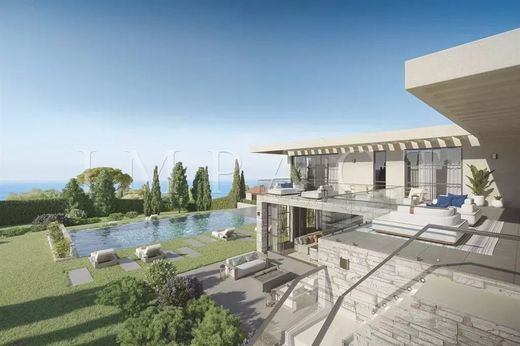 Sublime and warm villa completely renovated in contemporary style with top-of-the-range services, located on a plot of almost 2,100sqm, in a dominant position in the popular, residential and quiet area of Super Cannes, enjoying a spectacular view of the Cap d'Antibes and the mountains, it offers approximately 450sqm on two levels.