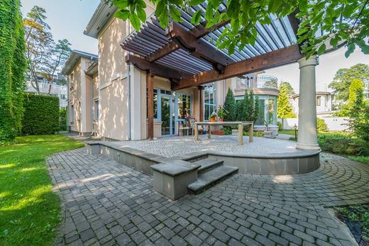 We offer to buy elegant and modern private house on Bulduri prospect. The property consists of a 925 m2 large plot of land and a two-storey residential building with a total area of 396 m2 and an outdoor terrace of 30 m2. The facade of the house is executed in classical style. The house has two floors - entrance hall with garage exit, workroom, wardrobe, spacious lounge-hall with fireplace and seating area, kitchen with dining area, exit to the terrace, guest toilet, pool and sauna area, as well as utility room, containing gas and dry fuel boilers. "Smart House" .Special room for recuperation. Automatic garden watering - borehole spice. On the second floor - five separate bedrooms, three bathrooms, three wardrobes. High quality materials - dolomite tiles, tinted wood floors, furniture, lighting fixtures, kitchen appliances are used in the interior decoration. Available garage for more than one car and outdoor parking for one more. All city communications. The yard is landscaped and landscaped. The white sandy beach and the sea are just 50 meters away. Jurmala is a city with a special aura - beaches, pine groves, fresh air, exquisite restaurants, the city's promenade - Jomas Street, the legendary Dzintari Concert Hall and the beloved LEGEND Beach complex.