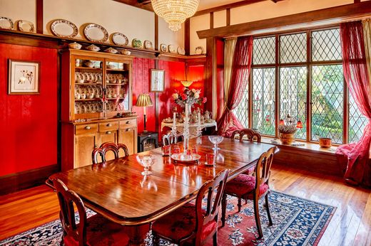 The stately residence retains original character features, antique fixtures and furniture and has been well maintained and refurbished with opulent chandeliers, quality furnishings and other interior upgrades. The magnificent entrance makes a fitting first impression leading into the expansive stunning ballroom, formal dining area and lounge room bar. A native Rimu wood panelled grand staircase leads to five substantial bedrooms, two with ensuites, and the rest share the large main bathroom with enormous walk in shower and original clawfoot bath. An additional library and former servants chamber offers further potential.