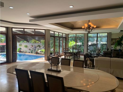 Detached house for sale with pool and 1844 m² lot in San Rafael, Escazú Master bedroom with office, walk-in closet, bathroom with jacuzzi and AA 3 bedrooms with walk-in closet and AA, with 2 bathrooms 4 full bathrooms Kitchen with natural lighting Pantry Maid's room with full bathroom Office Large living-dining room overlooking the pool Large pool with high ceiling Large garden around the entire house Terrace Comfortable BBQ area Room with wine cellar with vaulted ceiling Living room with fireplace and pool view Parking for 11 vehicles Cellar Separate house under construction with: Gym, office and bedroom with full bathroom Imagine living in a single-level detached house in the heart of Bello Horizonte, Escazú, surrounded by peace, security and spaces designed for maximum enjoyment. This property was completely transformed in 2004, standing out for its elegance, top quality materials and a design conceived for comfort and good living. From the moment you enter, you'll be welcomed by spacious, light-filled spaces. The home features several social areas: two living rooms perfect for meetings or relaxing moments, a spacious dining room for large family gatherings, and a charming BBQ area with a more intimate dining area, ideal for al fresco dining. One of the living rooms leads directly to a spectacular terrace that opens onto the pool and lush garden, creating the ideal place to enjoy Escazú's climate. The spacious and functional kitchen will allow you to create special moments around the breakfast table. It also features a generous pantry, a laundry area, and a maid's room with its own bathroom. In the private area, you'll find bedrooms that offer privacy and comfort. Two secondary bedrooms share a full bathroom, while another bedroom has a private bathroom and walk-in closet. The master suite is a true retreat: with direct access to the pool, a large dressing room, and an en-suite bathroom with a shower and bathtub for relaxing after a long day. In addition to all this, the house features additional spaces that will make your life more comfortable, such as a wine cellar, a gym, a staff room, and an office perfect for working from home or as a personal studio. As if that weren't enough, the property has access from two different streets, offering greater flexibility and convenience. This residence isn't just a home; it's a lifestyle. Can you imagine enjoying every day in this private oasis? Don't miss this unique opportunity in Escazú!