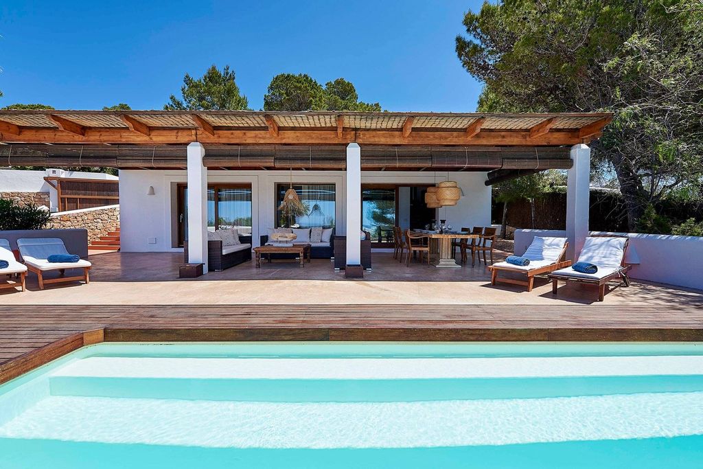 It is an ideal retreat for families and friends, located in a privileged location, just a few minutes' drive from the beaches of Cala Tarida, Cala Molí, and Cala Vadella, where you will only need to decide between a swim in the pool or in the sea.