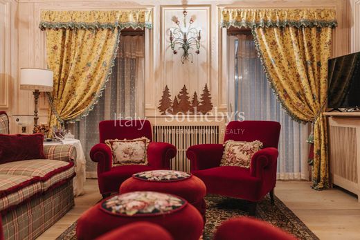 In one of the most exclusive areas of Cortina d'Ampezzo, characterized by quietness and enchanting views of the iconic peaks of the Tofane, just upstream from the center that can be reached on foot in a few minutes, is this elegant renovated villa with a unique style.