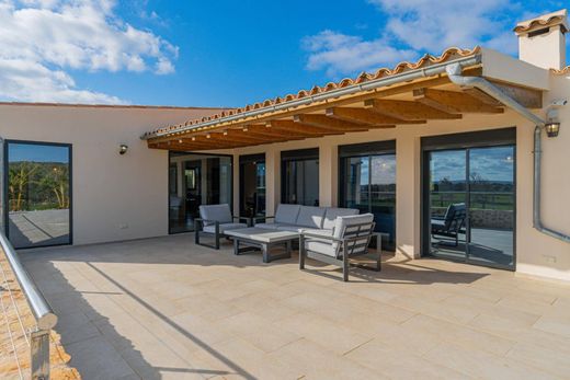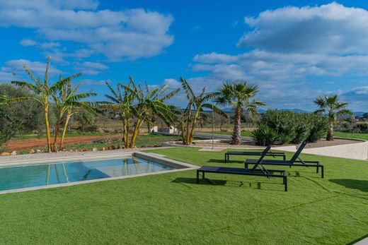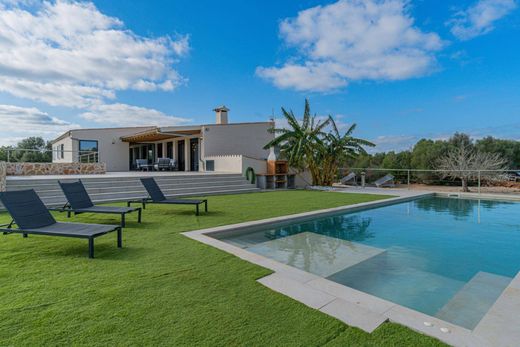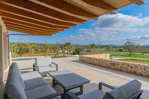 Exclusive New-Build Estate with Two Pools in Campos~~Exclusive new-build rustic estate located in Campos, just 25 minutes from Palma and 20 minutes from the island’s best beaches. The plot spans approximately 23,700 m² and includes a two-story home with around 500 m² of built area.~~The property is accessed via a private driveway through the garden. Outside, there is a spacious sun terrace with a pool, shower, and barbecue. The estate features two covered porches, is surrounded by several terraces, palm trees, olive trees, fruit trees, and native vegetation.~~From one of the porches, you enter the house through a large living room with a fireplace, dining table, and pool table. This space connects to an elegant open-plan kitchen, fully equipped, and a hallway leading to one of the bathrooms and two double bedrooms, as well as stairs to the lower floor.~~On the ground floor, there are three double bedrooms, each with a full en-suite bathroom and direct outdoor access. The master bedroom also features a spacious walk-in closet. Additionally, there is another full bathroom on this floor. Highlights include a spectacular heated indoor swimming pool with a counter-current system, a small spa, jacuzzi, and gym.~~The house is energy-efficient, equipped with solar panels, an alarm system, heating, air conditioning, a fireplace, furnishings, a reinforced door, and electronic management systems. This brand-new construction is built with high-quality materials, including exposed wooden beams and a partially natural stone façade.