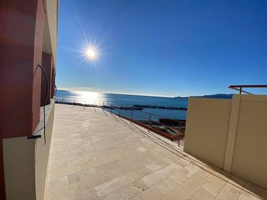 Promenade. In the most beautiful and typical area of Chiavari right on the Promenade we find the Splendid Torre Fara, it is a very rare luxury building that stands directly on the sea, it should be noted that it is not a simple property renovation but a conservative restoration of a historic monument of Chiavari. Located at the western end of the Chiavari promenade, it allows you to benefit from an absolutely exclusive environment, where the Grazie hill meets the sea. This very bright apartment, of 130 commercial square meters of which 95 of living space and 65 of splendid Terrace with Sea View on the Portofino Promontory is composed of a very bright living room with open kitchen completely facing the sea and French window with exit to the Wonderful Terrace with Sea View, two bedrooms, one of which is a double bedroom with Sea View and private bathroom "En suite", a second bedroom and a second bathroom. Like all apartments, it is equipped with every comfort and high quality finishes, a large private garage of 34 square meters. Torre Fara is surrounded by a park of over 5000 square meters. which creates an ideal refuge where you can find serenity and regenerate, stimulate the senses among the typical essences of the Mediterranean scrub and let yourself be lulled by the rhythm of the waves and the scent of the sea with the new promenade close to the beach that connects the neighborhood with the fishermen's square, one of the most characteristic and historic areas of the city of Chiavari. Monumental historic building from the 1930s The style of the Colonia Fara reflects the futurist and expressionist culture of the period. It is a 49-meter high building composed of a large two-story high base on which a ten-story tower stands. Expression of futurist architecture The "Fara" is arranged diagonally on its trapezoidal lot, as if with this inclination towards the east it wanted to naturally turn to the first sun. Thus the monolith of the tower has stood out for more than eighty years against the immediate backdrop of the Grazie hill and the wider Tigullio arch. After some time, the simplicity of this building with its ribbon windows still makes it elegantly projected into the future. The privilege of having a park in the city. Excellent Real Estate Investment. Property of very rare availability on the Market. Chiavari finds its symbol again, the Torre Fara, a historic building of the futurist architecture of the 30s--c89e1d62d9a1092d1d615f79bcfa0d76!