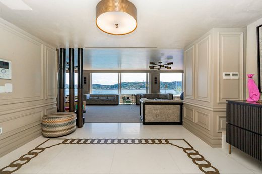 With a location in one of the historically most affluent neighborhoods of Istanbul, Bebek, guaranteeing both security and luxury alike, is this spacious duplex apartment for sale at only $6,750,000. Directly facing the Bosphorus Strait, a view which acclaimed Bebek’s coasts, the apartment is privy to unhindered views of the water and cityscape of Anatolian Istanbul across the channel. Nautical views of Bosphorus tides lapping at the docked boats are available from the floor-to-ceiling windows and expansive open balcony. The chic balcony itself spans approximately 100 square meters of the 400 square meter gross area of the apartment, perfect for entertaining guests and hosting events in the salty sea air. The interior, refurbished with high quality materials, is apt for conversion into any architectural style a future owner would prefer, from ultra-modern to traditional and homey. The duplex comprises three bedrooms, two bathrooms, and two living rooms. An indoor sauna, jacuzzi bathtub, glass spiral staircase, and dressing rooms are just a few of the chic features available within. Furthermore, residents of the building are given access to a shared dock. Contact us today to organize a private viewing of this exceptional property.
