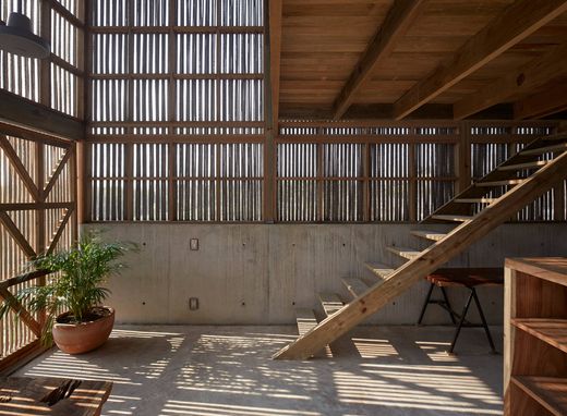 Casa Naila is located in Puertecito, a small community on the coast of Puerto Escondido, the hottest destination in Oaxaca. The location of the house is perfect as it is built in such a way that you have a view of the ocean from 2 fronts. The architectural project, winner of multiple awards, is developed both inside and outside, seeking spatial and functional efficiency where the core of the project are the social areas that connect with the private ones through a central patio and the pool, in this way a simple, aesthetic and low maintenance home with capacity for 15 people is achieved. The objective is to have the least impact on the land where being a beach house most of the activities are carried out outside Built with materials of rural architecture in Oaxaca such as palm bone, clay, earth and exposed concrete. The house has 4 bedrooms and 4 full bathrooms; On the ground floor, the master bedroom and a secondary bedroom, the kitchen, living room, terraces, gardens and the pool. Upstairs there are 2 bedrooms plus the loft of the master bedroom.