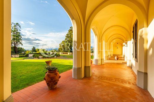 The highly prestigious historic villa features classic Tuscan architecture with Renaissance influences. The coffered ceilings, marble fireplaces and decorative details reflect the refined elegance of the past. A magnificent example of an aristocratic residence, with architectural elements that testify to its historical importance. The loggia and veranda, with their elegant arches, add a touch of sophistication and harmoniously connect the interior with the exterior, offering a unique living experience surrounded by greenery. The interiors, enhanced by parquet floors and fine finishes, express a classic and elegant taste, ideal for those seeking a representative residence.