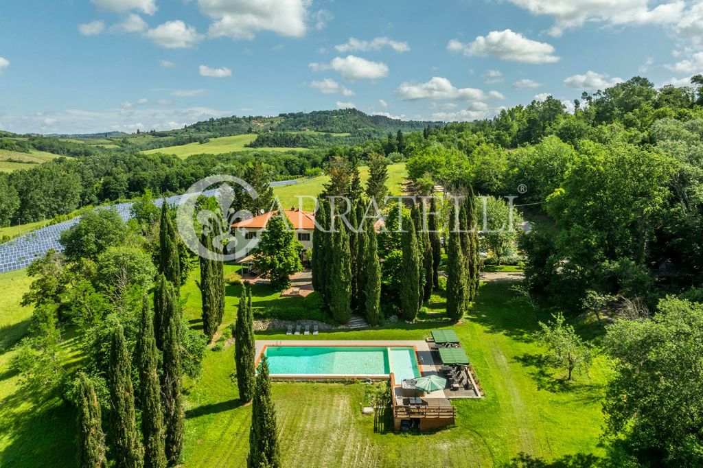 A villa in the quintessential Chianti of about 700 sqm, perfectly and recently renovated. Equipped with a infinity pool and panoramic hot tub, the property is immersed in a 80-hectare estate between Florence and Siena, offering an enchanting view of the Tuscan countryside and outdoor spaces designed for maximum relaxation.