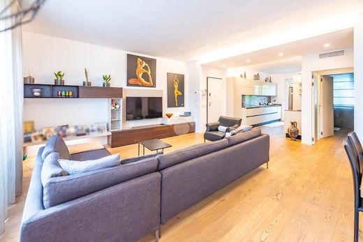 Located in an elegant and exclusive context, this prestigious home is spread over two levels, on the 4th and 5th floors of an elegant building. The refined interiors and the high-quality finishes contribute to making the property a high-level housing solution, designed to satisfy even the most sophisticated needs. On the first level of the property, we are welcomed by a large and bright double living room, ideal for moments of relaxation and conviviality, characterized by large windows that allow access to a generous balcony, perfect for enjoying the surrounding tranquility and the panoramic view. This room represents the beating heart of the home, where natural light is the protagonist, creating a warm and welcoming atmosphere. Adjacent to the living room, we find the open kitchen, spacious and modern, which can also be used as an eat-in kitchen. From here you can access a second balcony, perfect for creating a small outdoor oasis, ideal for enjoying a coffee or breakfast in the open air. The night hallway separates the living area from the sleeping area, ensuring maximum privacy. From here you access the two master bathrooms, both furnished with high-quality materials and equipped with all comforts. The sleeping area includes two large double bedrooms. The first bedroom, bright and well-organized, overlooks the silence of the internal courtyard, while the second double bedroom has a spacious walk-in closet and direct access to the balcony, which adds an additional private outdoor space to enjoy the view. A modern internal glass staircase connects the two levels, adding a touch of contemporary elegance. On the 5th floor we find a second large living room, characterized by a modern and minimal style, which blends perfectly with the open kitchen. This space, large and versatile, is perfect for welcoming guests or spending moments of relaxation with the family. From the living room you can directly access the wonderful 55 square meter terrace, a real extension of the living area, ideal for outdoor dinners, moments of leisure or simply to enjoy the wide and unobstructed panoramic view that extends over the entire city.