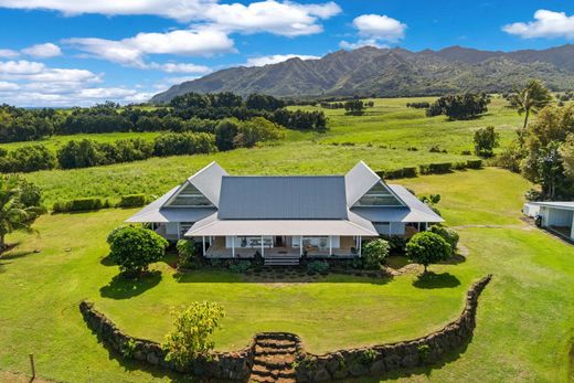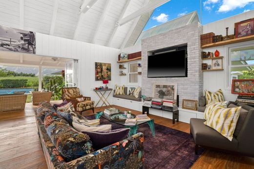 Designed by Santo Giorgio and built in 2017, this stunning home is a masterpiece of Hawaii’s contemporary plantation-style architecture. Situated on nearly 3 acres and bordering 500 acres of ranch land, the property offers panoramic views of the iconic Waipake mountain range. Relax in your brand-new custom salt water pool with complete privacy and gorgeous views! Spanning 2,192 sqft of interior space with over 1,200 additional sqft of covered outdoor lanais, the 4-bedroom, 4-bathroom home is a harmonious blend of modern design and Hawaiian living. Triangular glass gable windows flood every room with natural light during the day and offer breathtaking stargazing at night. Each room opens to teak-covered lanais, effortlessly blending indoor and outdoor spaces around a lushly landscaped central courtyard and pool. Designed with comfort and views in mind, the great room, outdoor spaces, and ensuite primary bedrooms capture sweeping vistas and stunning sunrises. The ensuite bathrooms, featuring outdoor showers and a soaking tub, are designed for privacy and relaxation, embracing the island lifestyle. Each room is climate controlled with a newly installed split system AC. Sold mostly furnished with high end finishes and decor. The thoughtfully landscaped grounds include vibrant tropical plants, a manicured lawn, and a fruit orchard with citrus, bananas, and avocado trees that provide year-round enjoyment. Additional property features include a carport with storage and a potting area, an agricultural shed, and a beautifully hand-carved Balinese teak bale. Property is completely fenced, including a sprawling horse pasture, making this the perfect equestrian sanctuary. Conveniently located off a quiet country road, the home is within walking distance to Larsen's beach and a short drive to several stunning beaches, farmers’ markets, shopping, and dining. With everything this home offers, you’ll find it hard to leave this idyllic Hawaiian sanctuary.