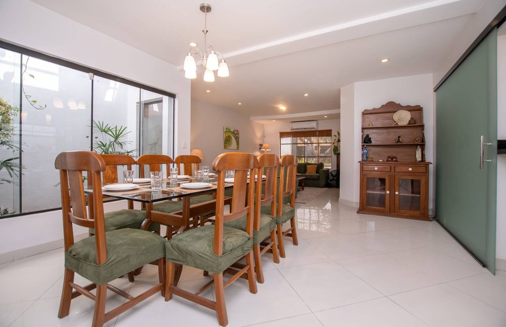 Located in a family-friendly neighborhood, close to prestigious schools, clubs, and medical centers, this charming single-story residence offers the perfect blend of style, comfort, and functionality. Designed for practical and relaxed living, it stands out for its spacious, light-filled areas, with a 300-square-meter plot and 280 square meters of built area. The layout includes a welcoming entrance hall, a living and dining room, a semi-integrated kitchen, and a service area. In the private section, there are three bedrooms, one of them a suite with a jacuzzi, as well as a cozy family and TV room. The exterior features a barbecue area ideal for gatherings, a space for an office or studio, a guest room, and a small pool with a waterfall. The terrace with a solarium and sauna completes this serene setting.