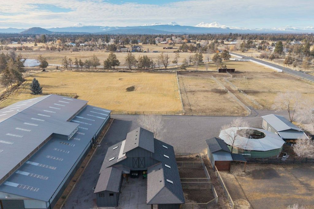 This exceptional equestrian estate near downtown Bend offers 2 tax lots,world-class facilities and Cascade Mountain views.The 80'x186' indoor arena features new silica sand and Pro-Tex footing and is complemented by the 175'x250' outdoor arena with a sand-fiber mix.Recently a hunter-jumper facility, it includes a Grand Prix field with a pond and jump/slide bank. Renovated barns offer bright stalls with skylights, groom stalls, and tack rooms.The 3-bedroom,2.5-bath house is ideal for a manager or owner.All of this 40 minutes to the lifts at Bachelor and located near Bend Airport.New office quarter in historic barn with 3 offices, staff lounge, staff breakroom and a full bathroom.This equestrian estate has unmatched access for equestrian enthusiasts while combining luxury,lifestyle,and all the outdoor recreation that Bend has to offer!