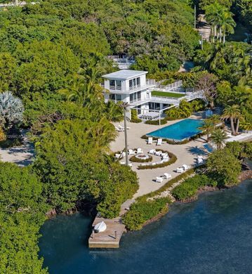 A Secluded Waterfront Paradise in the Heart of the Florida Keys. Step into a world of minimalistic elegance and tranquility at this one-of-a-kind coastal oasis. Tucked away on over an acre of lushly landscaped, private property stretching from highway to water, this architecturally unique home offers serene luxury and endless possibilities. Arrive via a tree-lined driveway to discover a striking three-story coastal retreat. Featuring four private en suite bedrooms, each with its separate entrance, the home is designed to provide privacy and relaxation for family and guests alike, great rental property for corporate retreat.