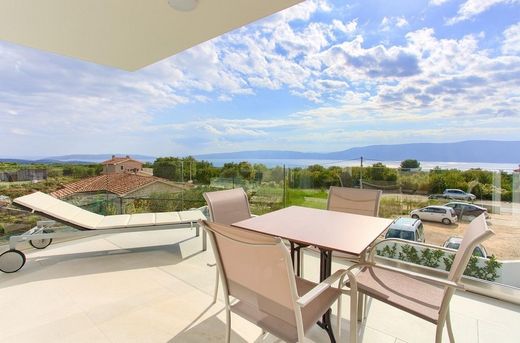 Modern luxury villa with swimming pool and sea view, Krk region, Krk island. This beautiful villa with a swimming pool is for sale in a quiet location in a small settlement in the Krk region on the island of the same name. The villa was built in 2019 on a 665 m² plot and offers a total area of approximately 410 m² with the following floor plan on three floors: The lower floor houses a laundry room and an office. The ground and upper floors contain a total of four apartments, each with two bedrooms, two bathrooms, a living room with a kitchen and dining area, and a large terrace. The apartments are furnished, air-conditioned, and have underfloor heating. Please contact us for further information and viewings. www.panorama-scouting.de | Real Estate in Croatia | only properties with sea views and directly on the sea www.panorama-scouting.com | Real Estate Croatia | Seafront Properties And Properties With Sea Views Deutsch | English | Français | Italiano Underfloor heating, barbecue grill, swimming pool, air conditioning, outdoor parking spaces, furnishings