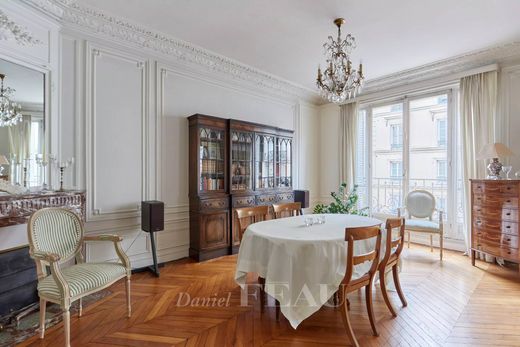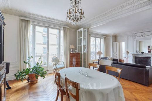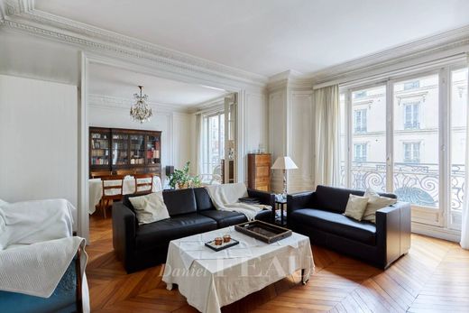 Marché Saint Quentin neighbourhood. This sunny south and east facing apartment opening onto balconies is on the 2nd floor of a fine mid 19th century building with a lift. An entrance hall leads to a double living/reception room, a kitchen with dining facilities, three spacious bedrooms, a bathroom, and a utility room or possible shower room.