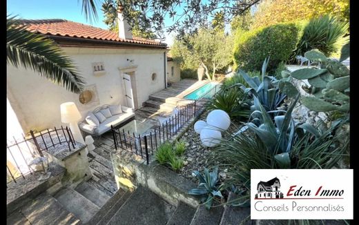 ANGOULEME, near the Bussatte district, 5 minutes from the city center. It is located on a hillside and benefits from a superb view and easy parking. It offers approximately 300m² of total living space, composed of two entrances, one accessible by a few steps leading to a superb terrace immediately highlighting the Mediterranean side of the exterior decorated with various species of trees and flowers. The perfectly renovated house opens onto an entrance with cupboards leading to a bright double living room serving as a dining room. Immediate access to the fully fitted and equipped kitchen also opens onto the front terrace. A large living room with very high ceilings, a magnificent stone fireplace and its access to the patio and terrace. On the upper floor a landing serving 2 bedrooms with views of the valley, A bathroom with Italian shower, 2 sink units, heated towel rail, separate WC and dressing room, A large master suite with its dressing room and private bathroom with shower and bathtub, the latter having access to the rear terrace with its swimming pool. Numerous relaxation areas are present: swimming pool, terraces, solarium, pétanque court complete the whole. DPE: D and GES: D carried out in 2024 A rare property not to be missed. Ref 060125 EDEN IMMO 06.16.87.94.30 Agency fees included of 4.46% payable by the purchaser. Price excluding agency fees €650,000. Energy class D, Climate class D Estimated annual energy costs for standard use: between €3,100.00 and €4,000.00 for the years 2021, 2022 and 2023 (including subscriptions). Information on the risks to which this property is exposed is available on the Géorisques website: georisques.gouv.fr.