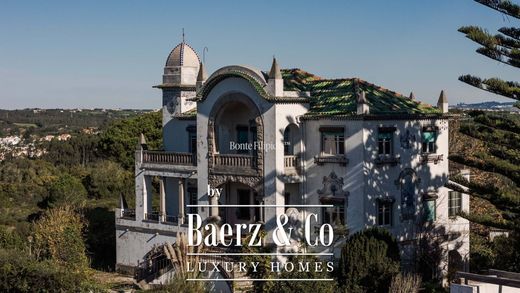 Outside, the terraces and gardens provide views of the Sintra mountains and the Atlantic Ocean, creating spaces for leisure or events. The property has a footprint of 948 sqm and is partially classified as residential, allowing for rehabilitation projects that comply with local urban planning regulations.