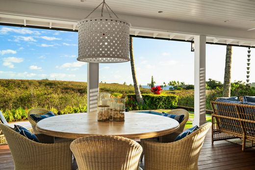 A masterful blend of classic plantation-style architecture and contemporary island elegance, this distinguished residence in Kukui'ula offers a sanctuary of refined craftsmanship and thoughtful design. Conceptualized by renowned architect Ginny Latham, the home showcases signature elements such as an elegant roofline, custom millwork, and double-hung Pella windows, enhancing its architectural beauty. Island Living, Inside and Out: Expansive Covered Lanai—Located on the ocean side, this lanai features an outdoor kitchen and entertainment area for connections, hosting, and relaxation. Serene Pool & Lush Landscaping – Enhances the setting with a tropical retreat and refreshing escape. Welcoming Front Lanai & Entry – Blending convenience with timeless plantation-style charm. Two-Car Garage—This garage was designed for functionality while maintaining the home’s elegant visual appeal. It is enhanced with a Tesla wall charger and photovoltaic panels. Dual Primary Suites—The Upper-Level Primary Suite features a private lanai with stunning ocean views, and the lower-level Primary Suite has a private retreat, an outdoor stone bathtub, and a garden shower. Office/Workspace – Intentionally designed for functionality and flexibility, catering to modern lifestyles. Interiors by Kala Interior Design, the residence has been carefully refined to balance aesthetics and functionality. The custom cabinetry was fine-tuned, while interior finishes were purposefully selected to establish a distinctive Island Plantation character, a timeless blend of classic charm and modern elements layered with natural textures and fibers that enhance the home’s warm and inviting character. - Marble countertops and handmade Italian subway tiles - Oak Latte wood flooring and Cerused Oak cabinetry - Patterned cement floor tile and Ipe wood deck - Tongue-and-groove wall paneling and custom millwork - Specialty wall coverings and shiplap paneling - and more