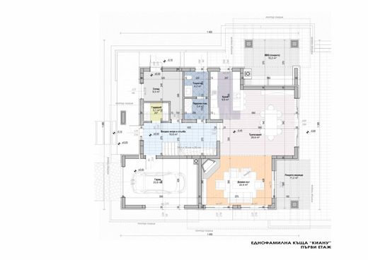 The house with a total area of 271 m2 is on two levels and has the following distribution: