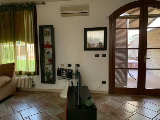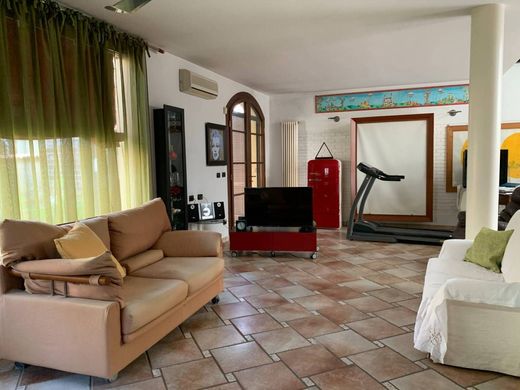 CORSO ERCOLE I D'ESTE ADIACENZE, in a unique position overlooking the ancient Estensi Walls prestigious independent villa free on 4 sides, recently and totally renovated, arranged on two levels and composed as follows: entrance to a large and bright living area of approx. of large windows overlooking the open air and brick fireplace, large kitchen with pantry area and access to a private internal courtyard ideal for outdoor lunches and dinners, three double bedrooms, one with private bathroom with window and internal walk-in closet, large bathroom with tub and shower, service bathroom, second walk-in closet or study, glass loft area, laundry room and garage communicating with the house. The property is completed by a planted green uncovered area of about 400 square meters.Excellent finishes (marble floors, parquet, open design staircase in steel, wood and marble, antique doors, air conditioning, condensing boiler, mosquito nets, security door, alarm, etc .. ) Free in 6-8 months. Exchange in the city is evaluated. APE being defined € 960,000.00 ref. Q886