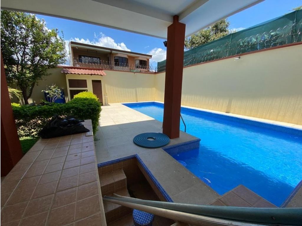 Beautiful House with Pool for Sale, San Vicente de Santo Domingo de Heredia General Description Price ¢300,000,000 Area 380 m2 Construction 460 m2 2-level house Living room Dining room Open concept kitchen with granite countertops High-quality faucets Built-in kitchen template Tall windows and sliding glass doors overlooking the garden 7 spacious bedrooms all with closets 4 full bathrooms and 2 half bathrooms Green areas Large pool with bar BBQ terrace Laundry area Garage for 2 cars Excellent location Safe area Reports at 8822 4837