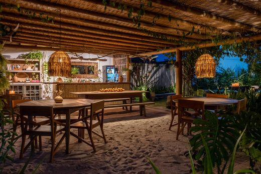 Located in the heart of Caraíva on an approximately 8,611 sq. ft. plot, this charming inn features eight suites, five of which have private pools, and one 646 sq. ft. suite equipped with a bathtub and a living area. All suites boast decor that blends rustic charm with creativity and sophistication, and include solar-powered water heating, air conditioning, minibar, and smart TV. The common area offers a shared pool, massage space, dining and lounge area, bar, and fully equipped kitchen. The inn also has its own well, a biogas system for organic waste, biodigesters, Starlink internet, and a generator that meets the entire demand in case of power outages.